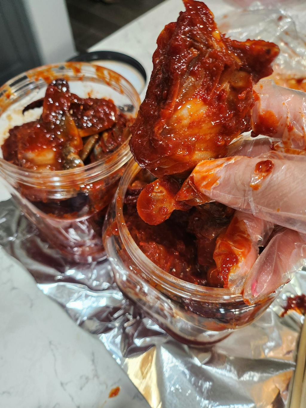 100% 국내산 비법양념에는 태양초 고춧가루를 비롯, 고추장, 마늘, 양파, 생강, 매실액 등을 아낌없이 넣었죠.