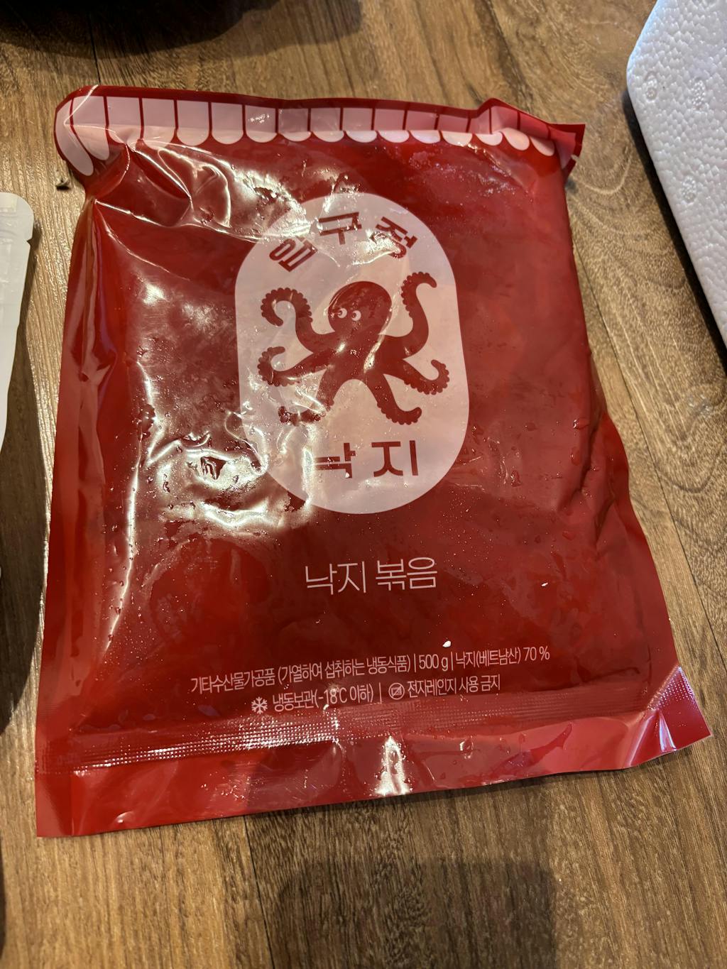 2. 중불로 예열한 팬에 해동한 내용물을 넣고 낙지가 익을 때 까지 약 5~10분간 볶아주세요.