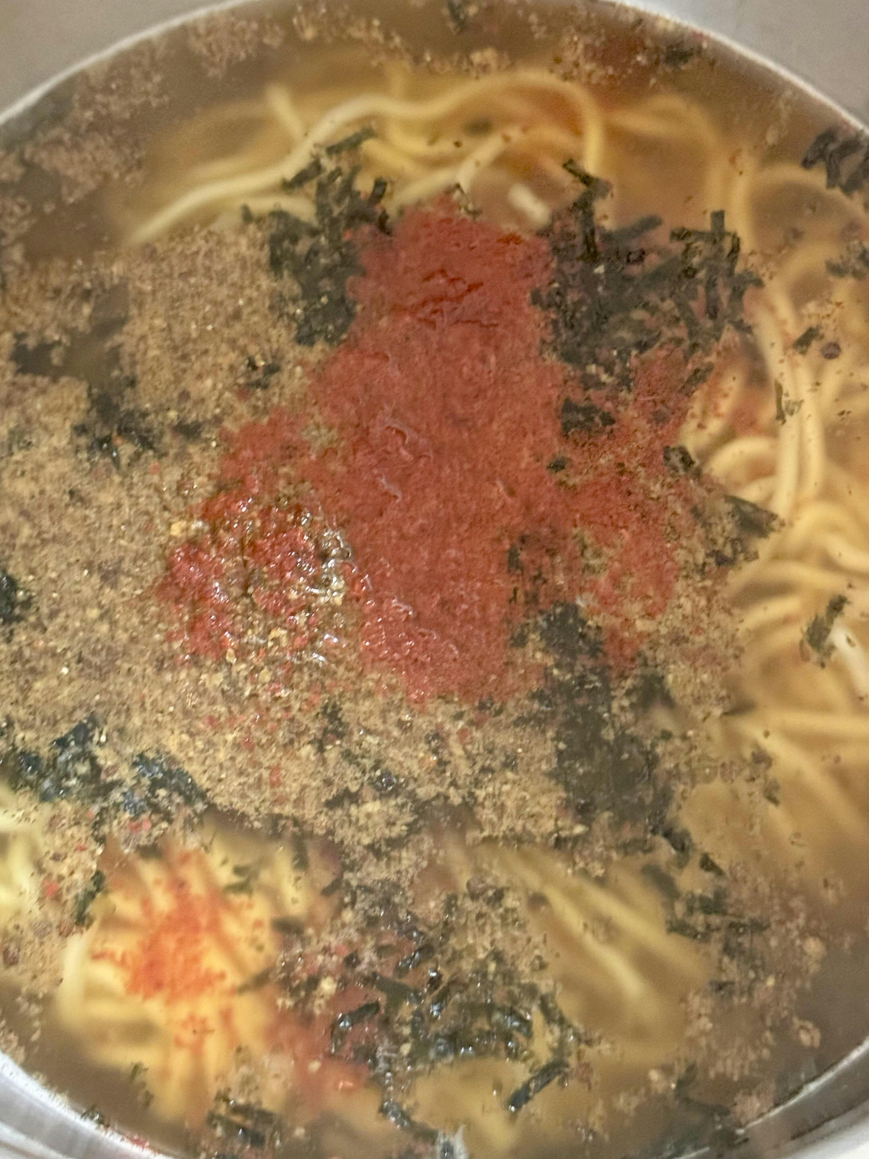 4. 들깨가루, 고춧가루, 김가루 고명을 취향껏 얹어 드셔 보세요.