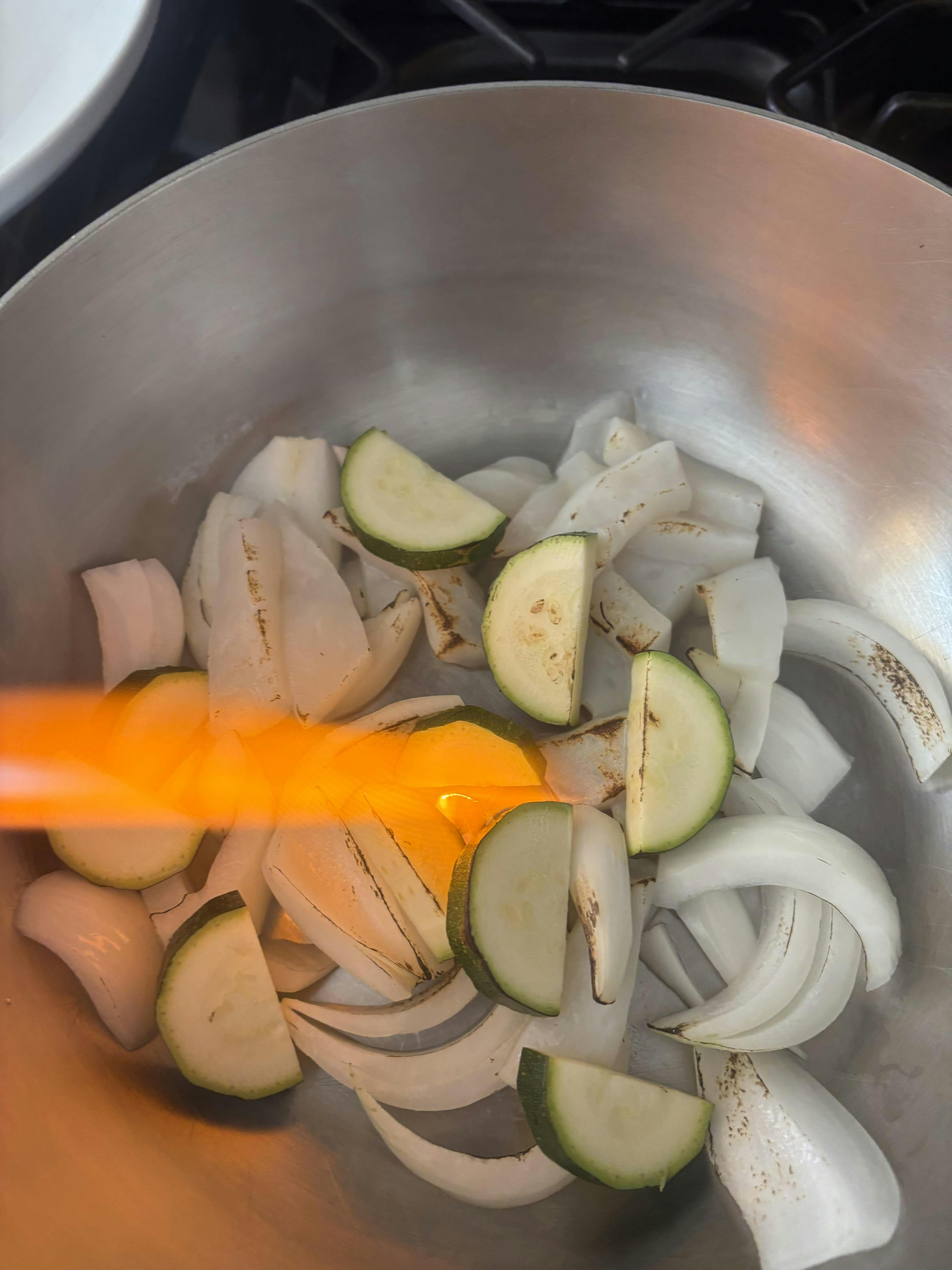 집에있던 야채와 오징어를 토치해서 불향을 입힌뒤 들어있던 야채해물국물팩을 넣고 보글보글 끓인후 들어있던 면을 넣고 50초 후에 불끄고 접시에 담아 근사하게 남편과 먹었네요😋