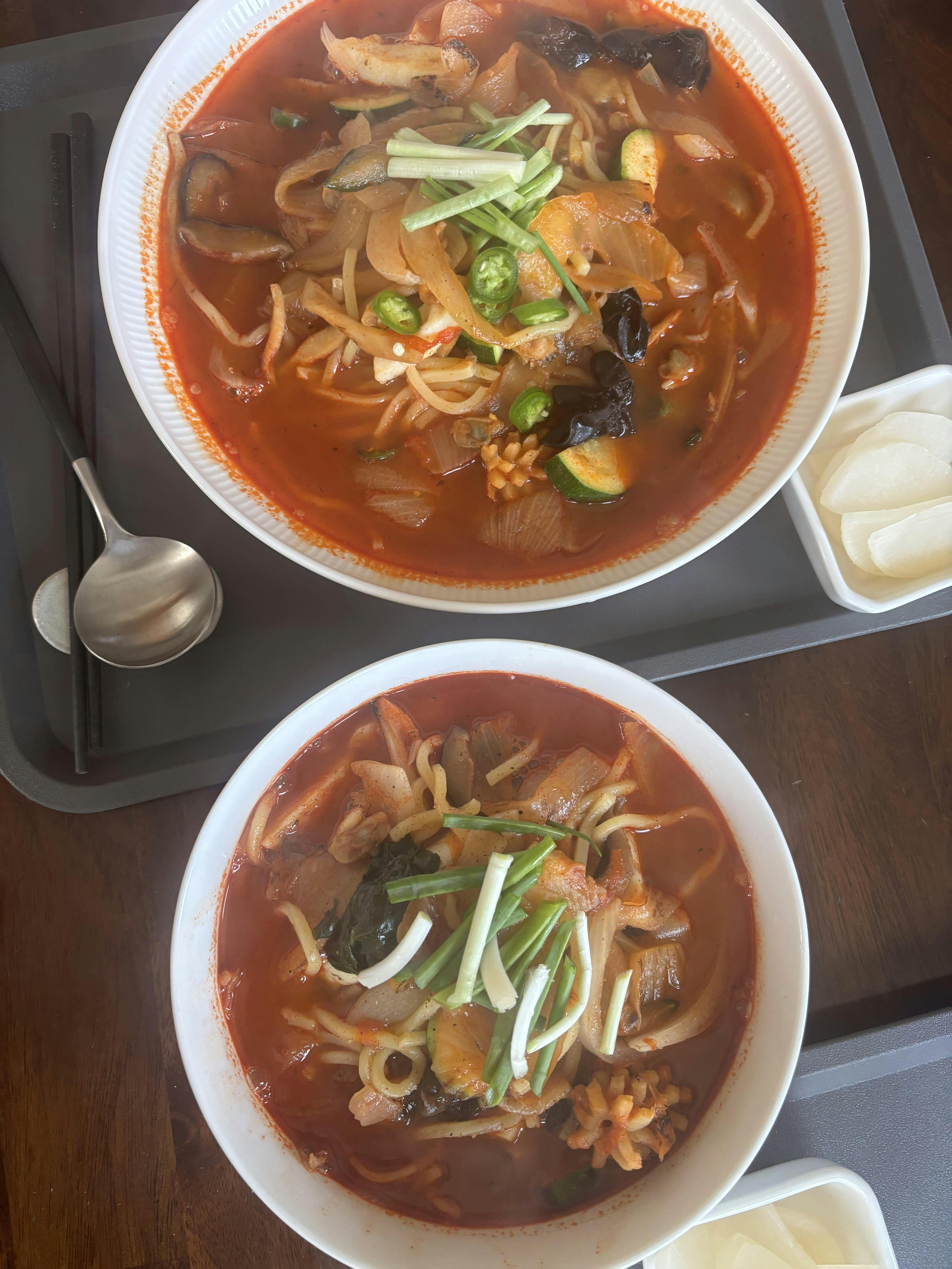 같은음식을(짬뽕) 두 개의 다른접시에 담았더니 같은짬뽕이 다르게 보이더라고요 😉 보기에도 좋고.