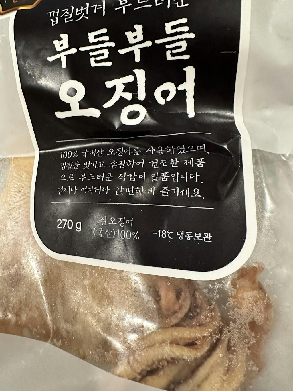 3마리 들어있어요.. 이름처럼 부들부들하고 ㅇㅎ징어 맛이 진하고 맛있어요~ 받자마자 한 마리 뚝딱 먹어치우고 후기씁니다^^