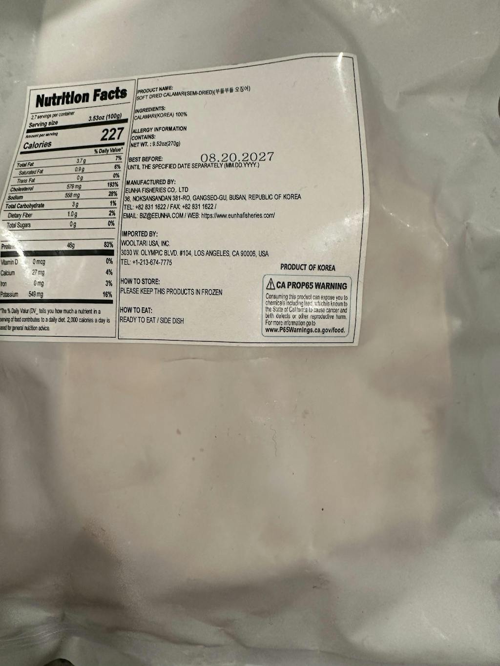 위 고지사항은 캘리포니아 주 법에 의해 표시하였습니다. 자세한 정보는 www.p65Warnings.ca.gov/food 에서 확인하십시오.