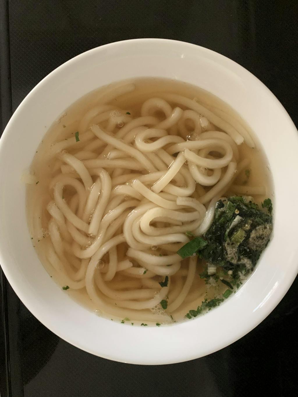 2. 끓는 물에 냉동 상태의 우동면과 어묵 혹은 유부를 넣고 강불에서 약 2분 30초간 끓여 주세요.