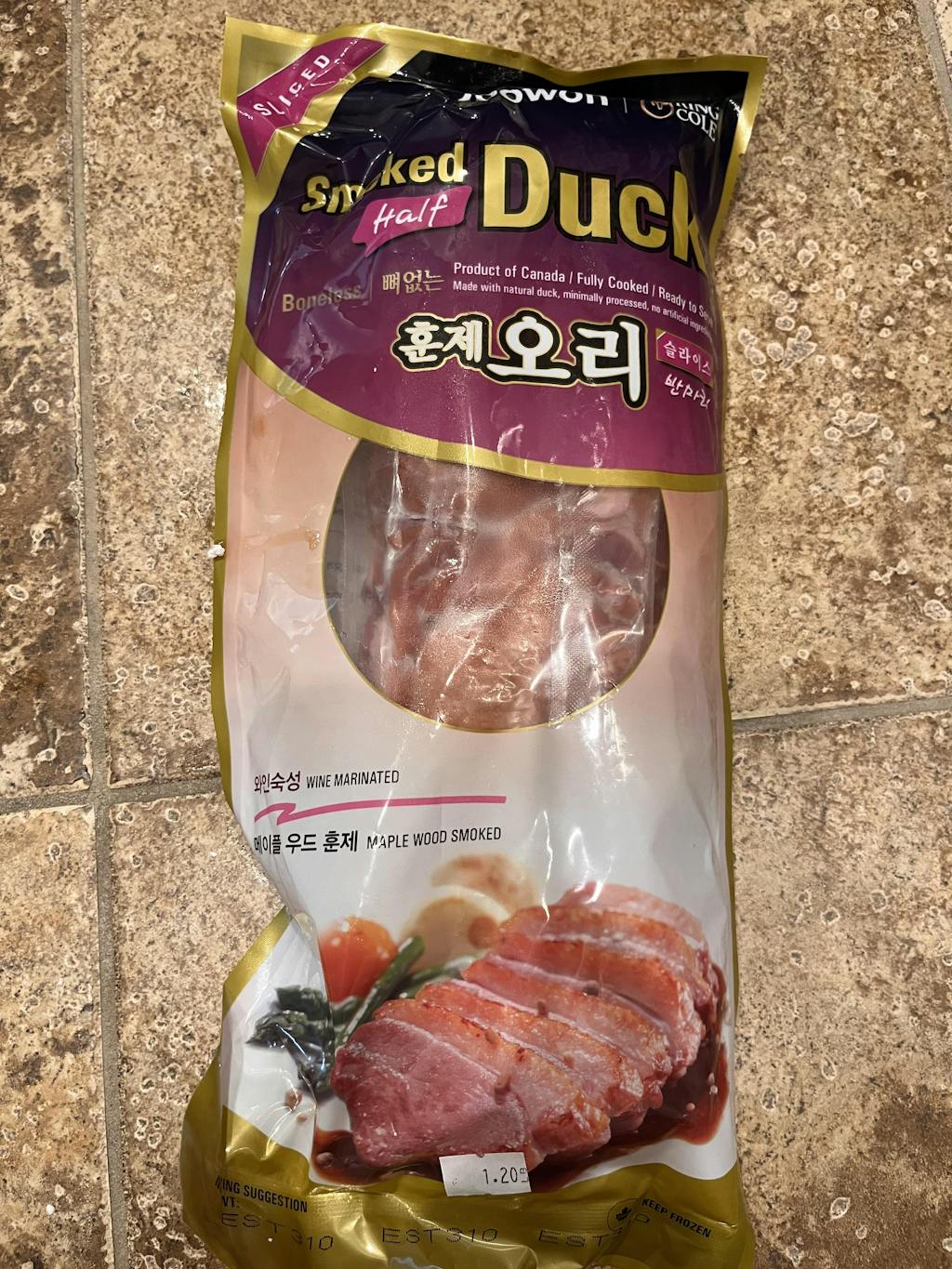 [주원] 훈제오리 반마리 슬라이스 (1lb ~ 1.4lb) x 2팩 (묶음)