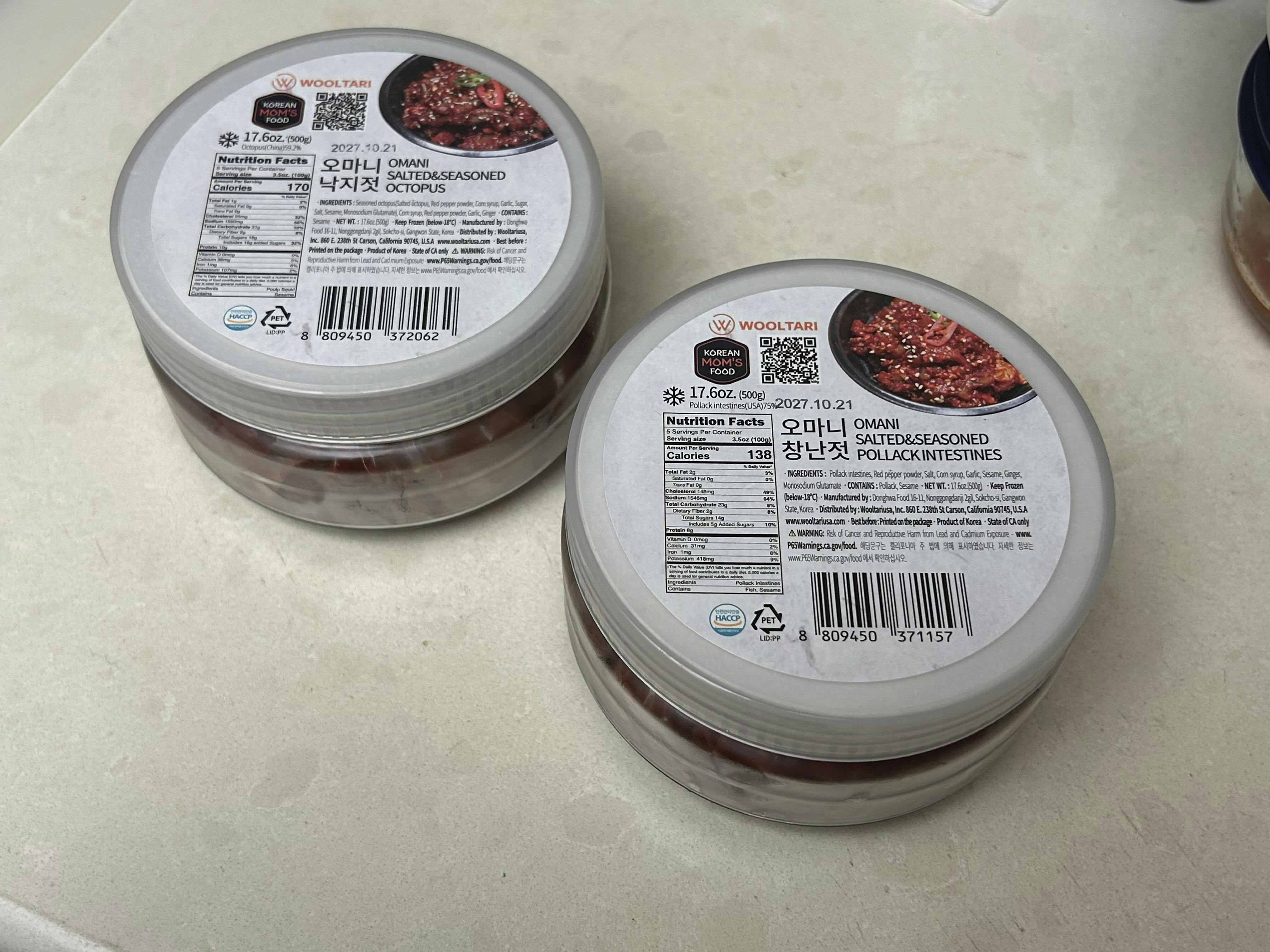 미국생활 20년 시어머님이 울타리에서 파는 명란젓 괜찮다고 추천해주셨었거든요! 오마니 백명란젓 너무 깔끔하고 맛나서 좋아했는데 이번엔 낙지젓을 한번 사봤어요! 🙆🏻‍♀️ 남편이 낙지의 식감을 너무 좋아해서 남편 밥반찬으로 사봤는데 제가 더 많이 먹고있어요..!!😍