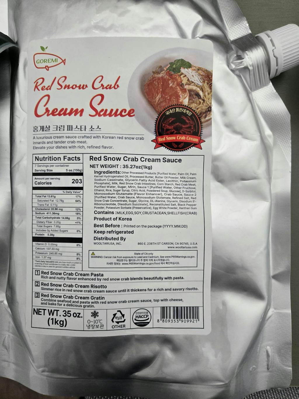 [고래미] 홍게살 크림 파스타 소스 1kg
