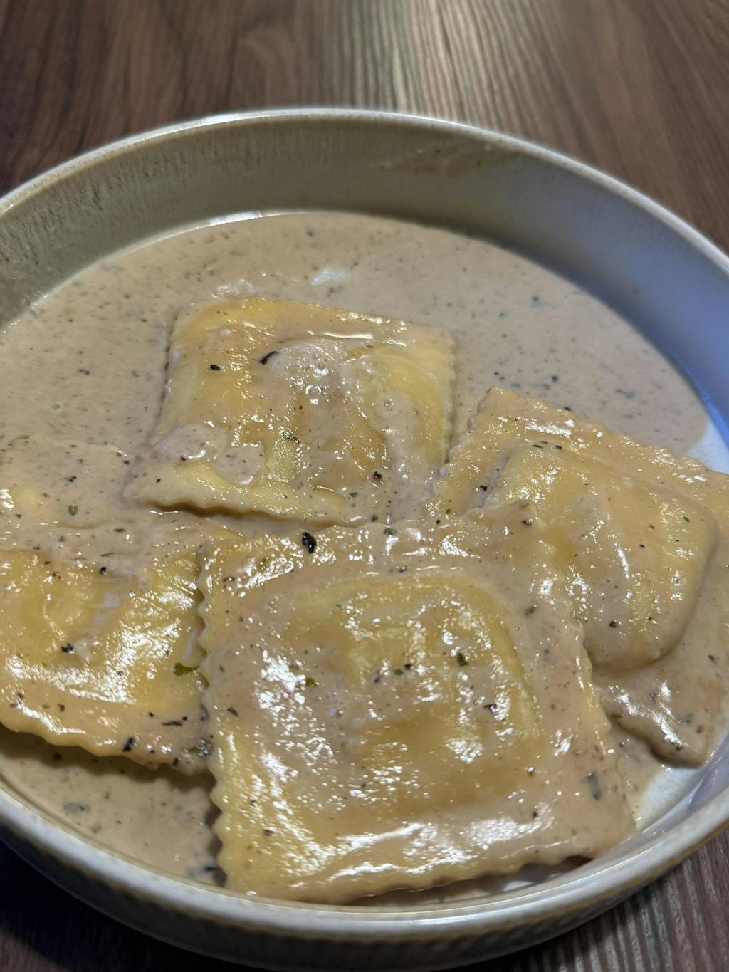 정말 맛있어요 ! 라비올리에 홍게파스타 소스
