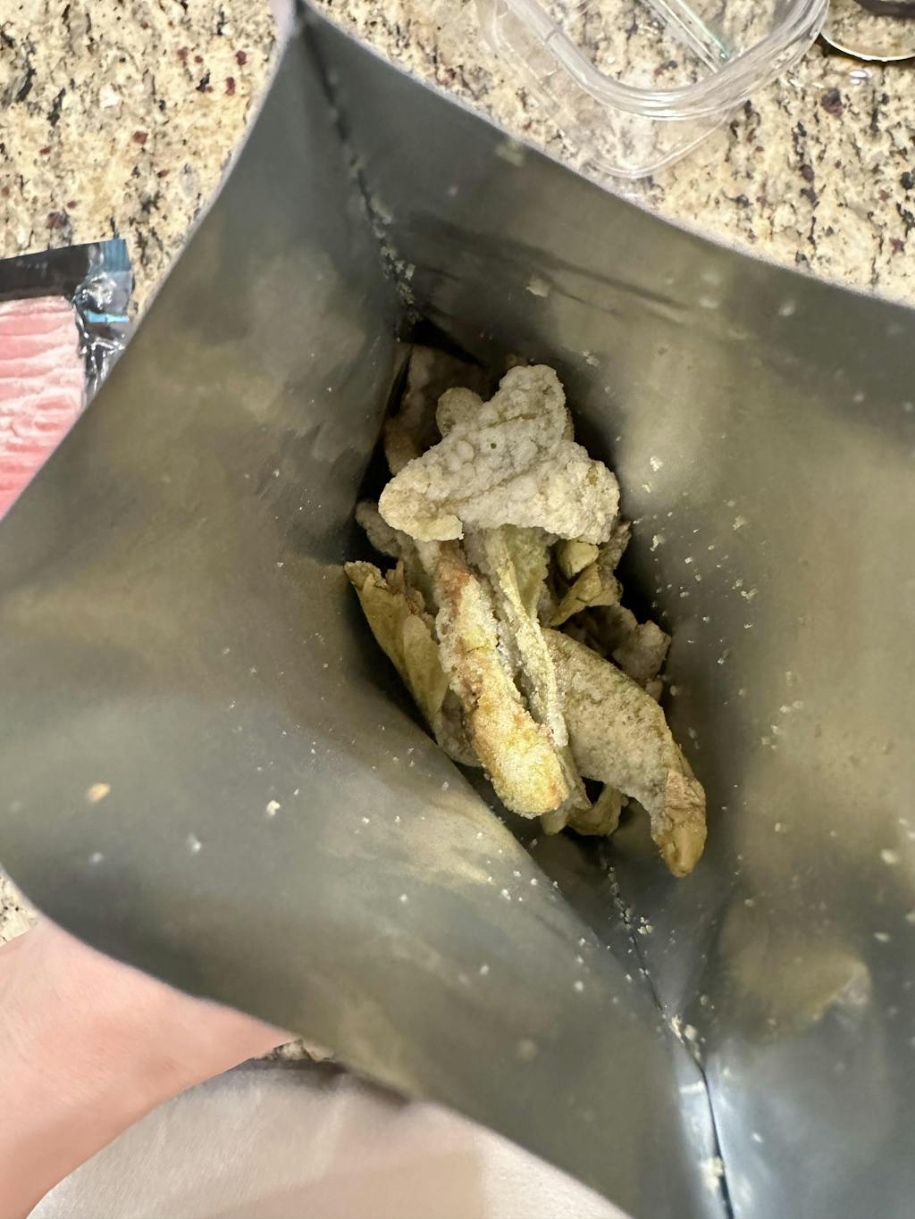 너무 맛나요. 바삭하고 고추의 쌉싸름한 매콤함도 좋네요. 양은 아주 적게 들어있습니다.