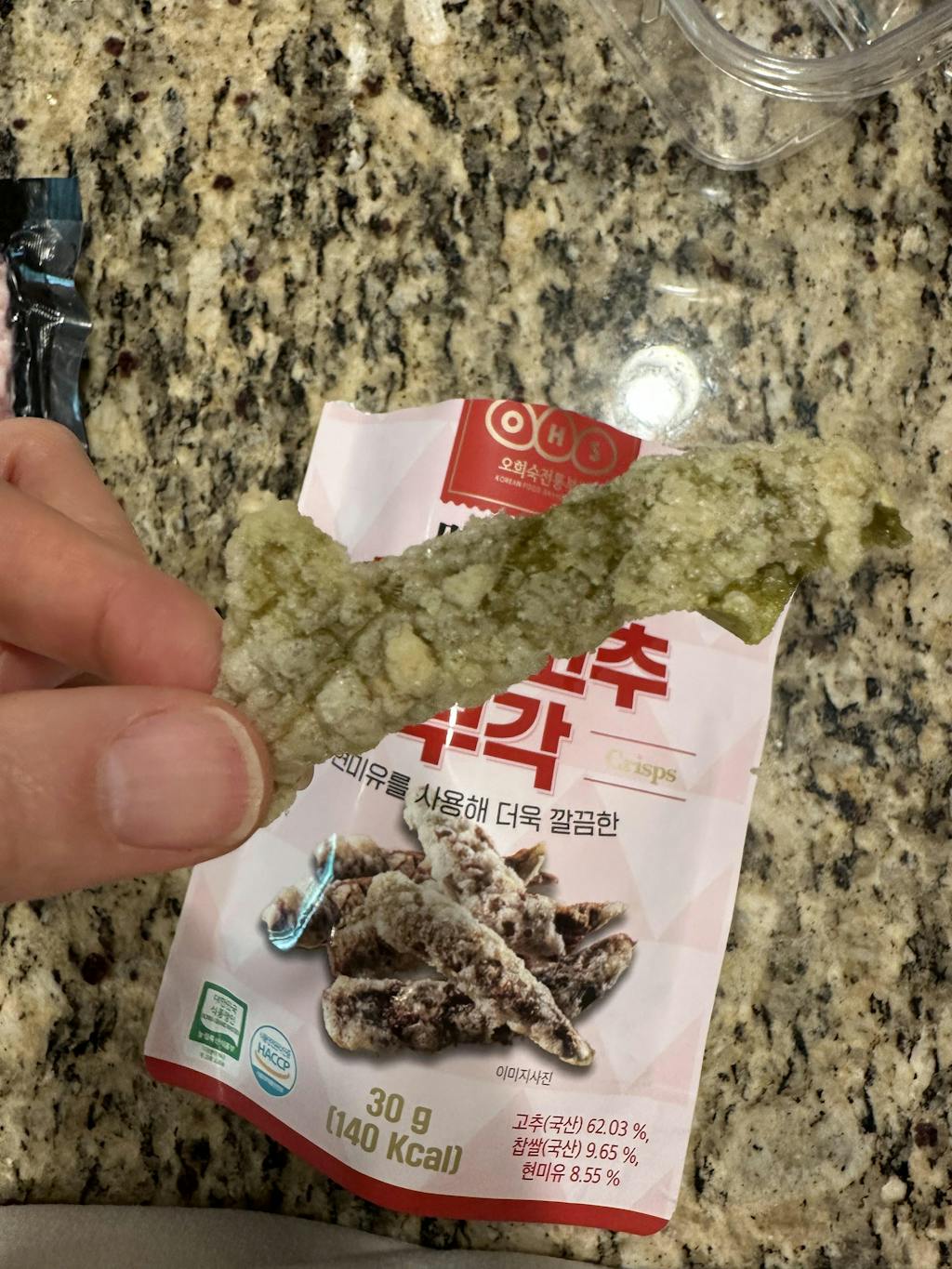 찹쌀 고추 부각은 사위를 위해 자주 구매 하고 있어요. 반찬으로, 간식으로 먹는 모습이 참 보기 좋아요.