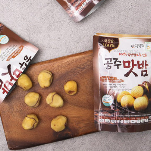 Made with 100% Gongju chestnut without any additives. Sweet and savory roasted chestnuts are packed in single pouches to make it easy to carry.
