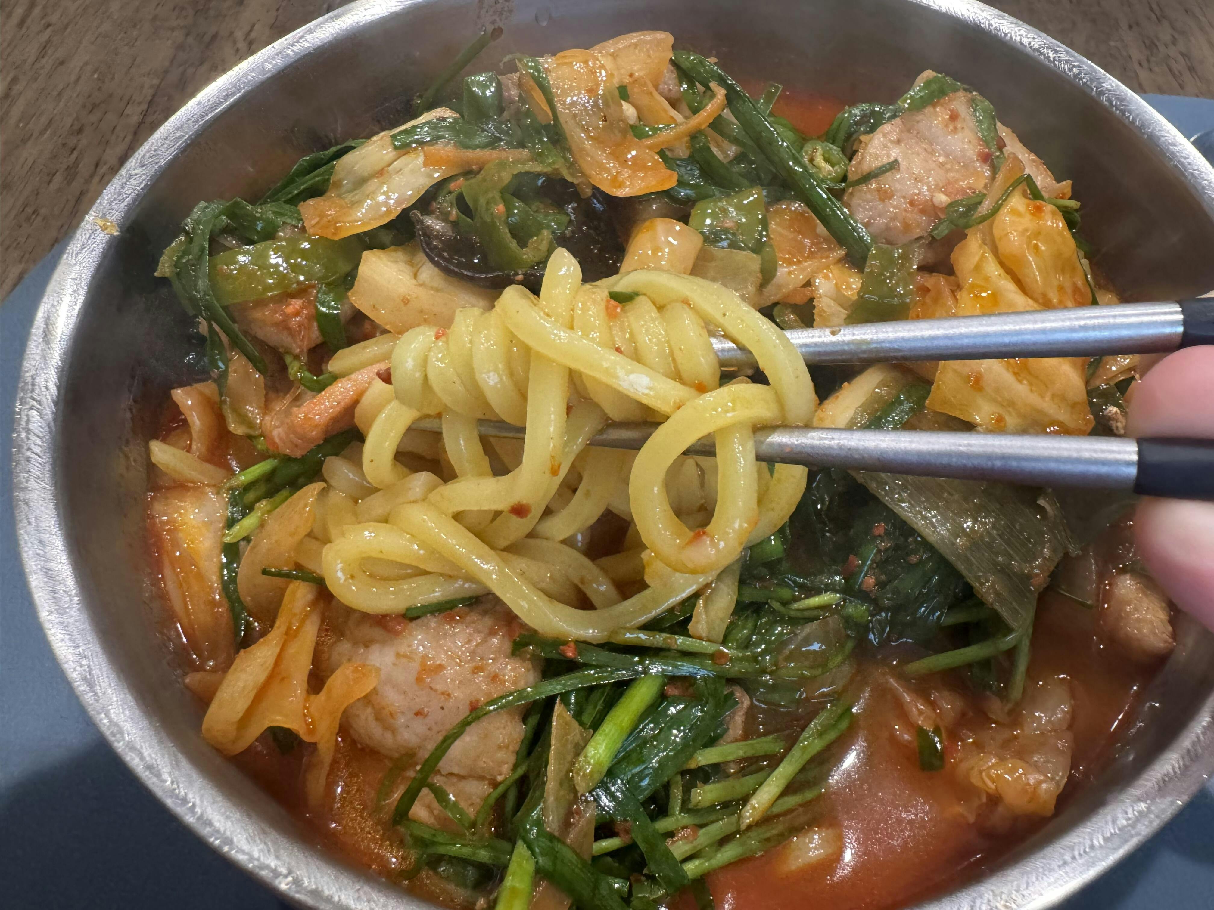 You can enjoy a deep savory and spicy jjamppong like it is freshly made, and the springy and chewy noodles mixed with vegetables are also very delicious