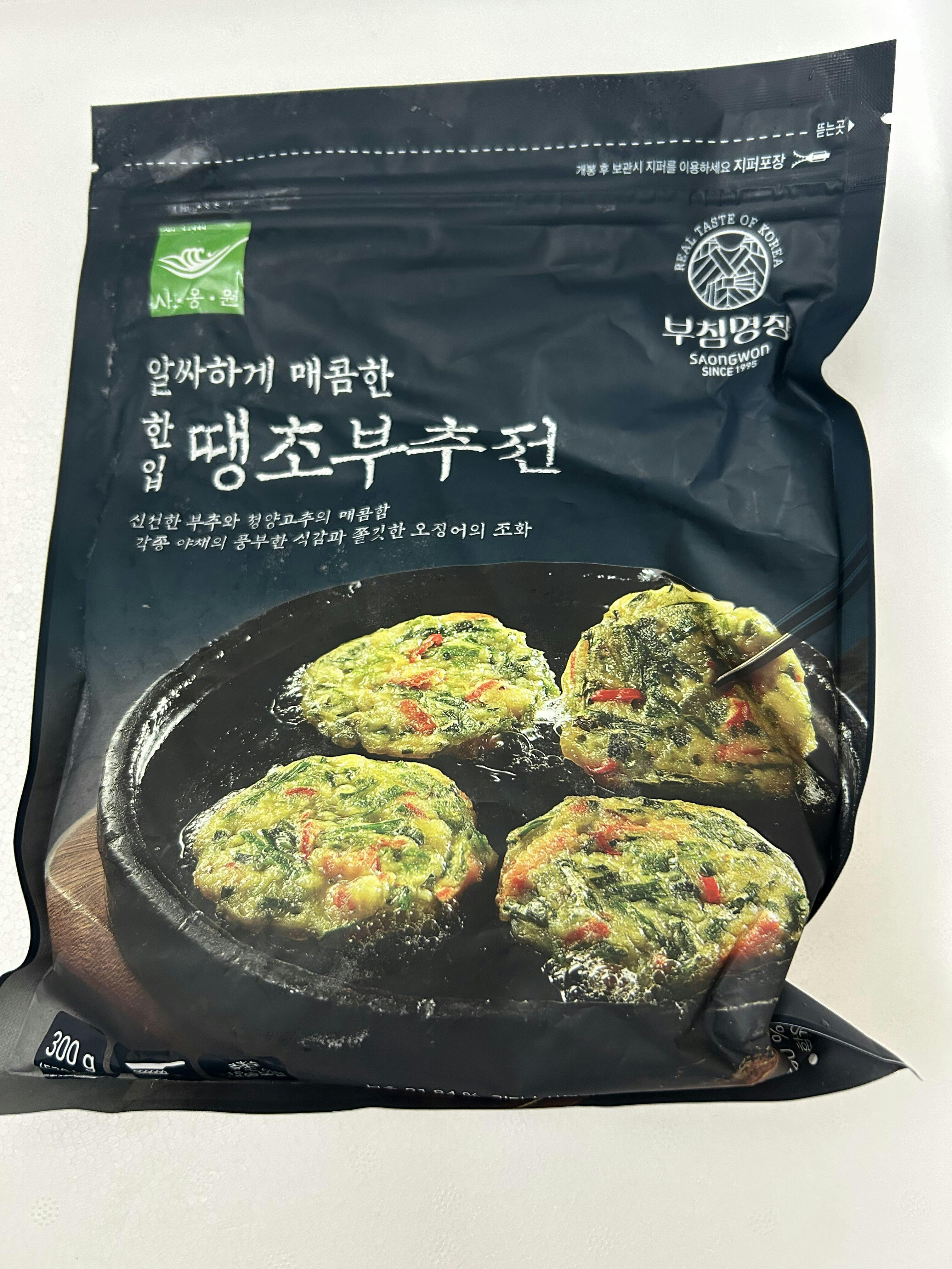 It is a bite-sized jeon (Korean pancake) made with fresh and fragrant chives, chewy and savory squid, and chopped spicy Cheongyang peppers, fried until crispy on the outside and chewy on the inside.