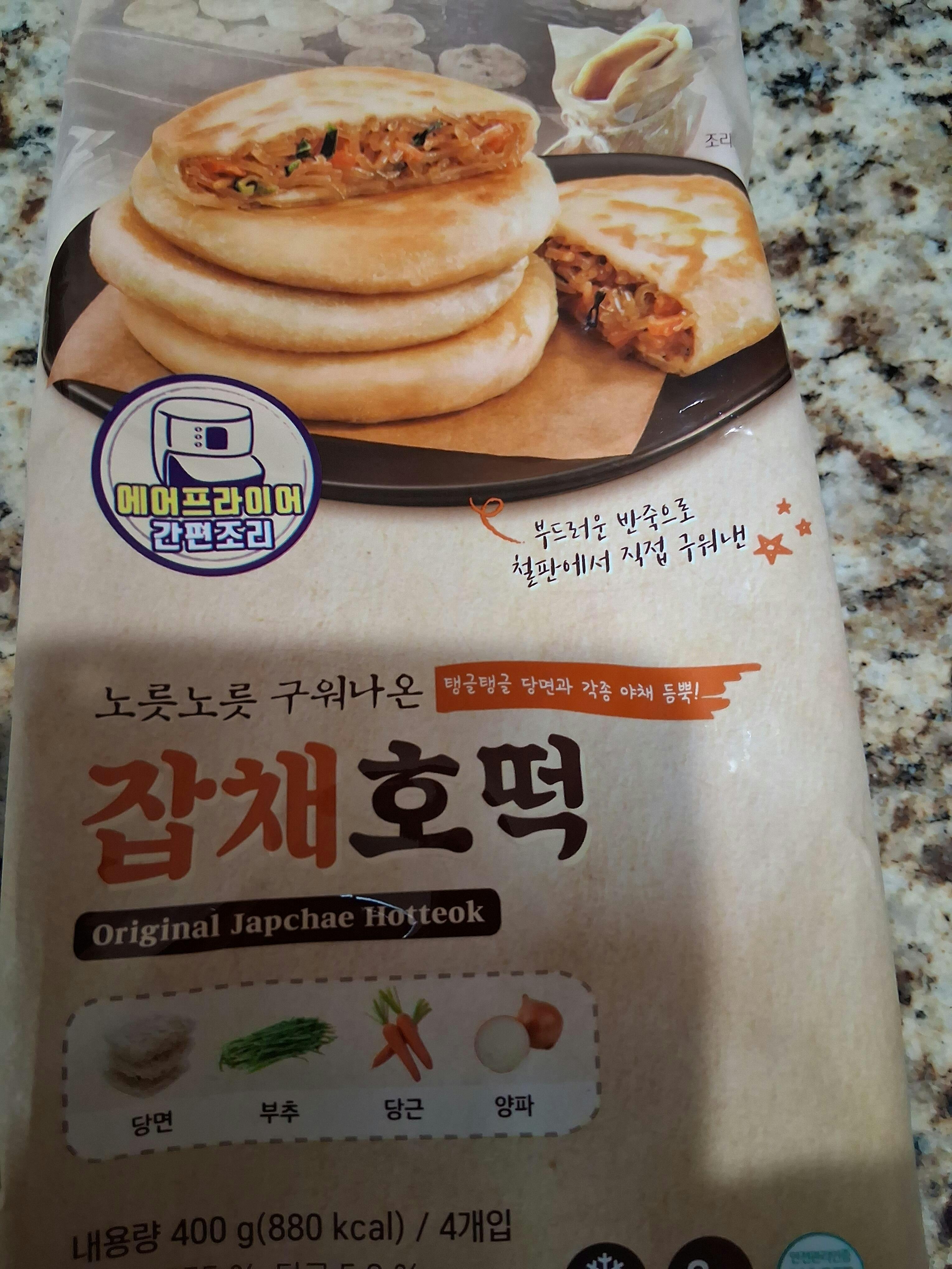 너무 맛있어요. 설탕 들어간 호떡보다 잡채호떡 좋아하는데 잘 데우면 남대문에서 파는 잡채호떡 못지 않습니다. 끼니 놓쳤는데 밥 먹기는 애매할 때 먹기도 좋아요. 간간해요!
