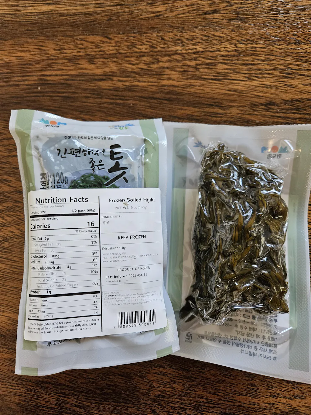Freshly harvested hijiki from the Wando Sea is quickly frozen and individually packaged without added salt or preservatives. Its crunchy texture makes it the perfect complement to any rice or seafood-based meal.
