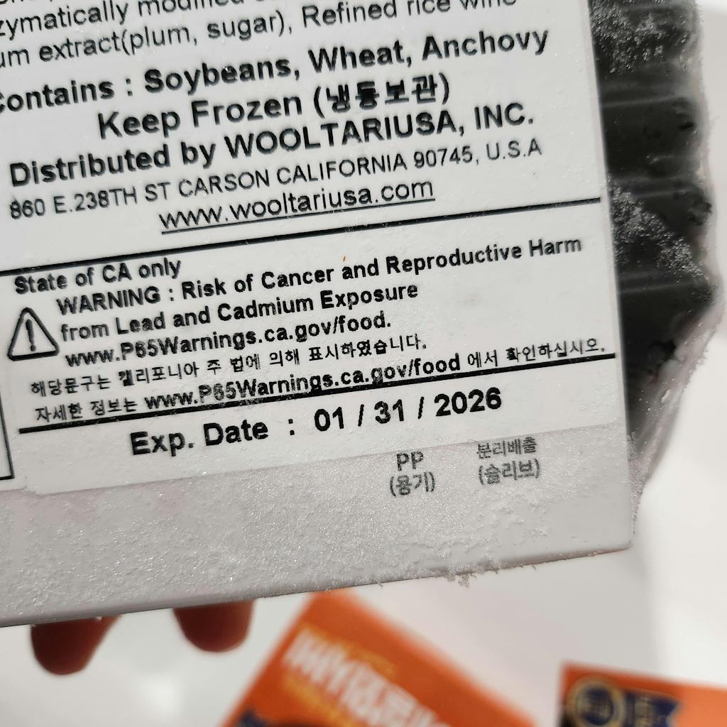 위 고지사항은 캘리포니아 주 법에 의해 표시하였습니다. 자세한 정보는 www.p65Warnings.ca.gov/food 에서 확인하십시오.