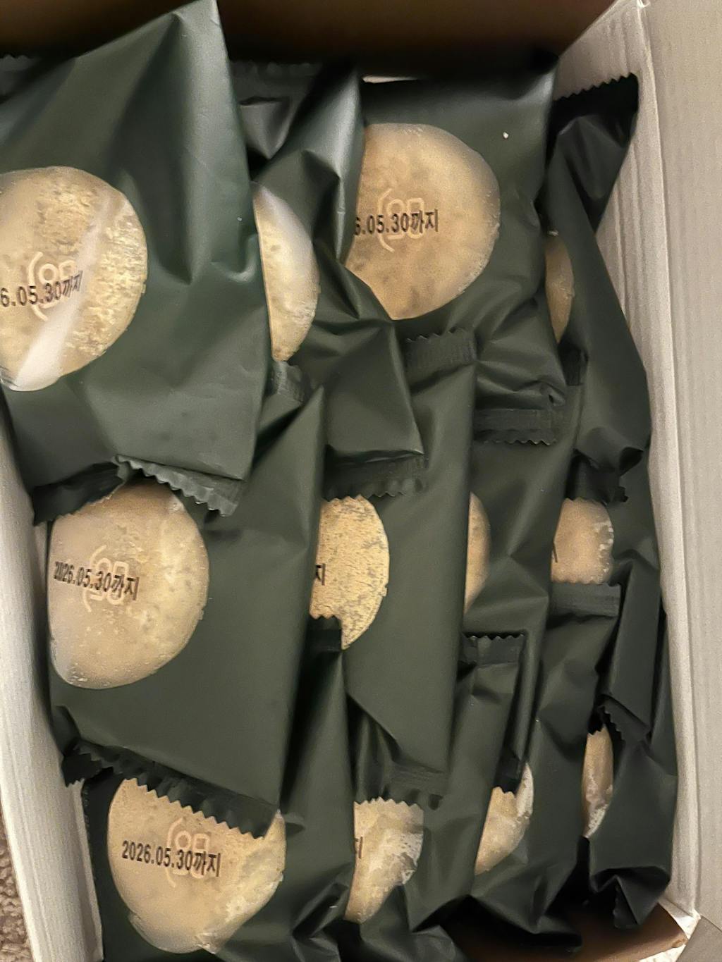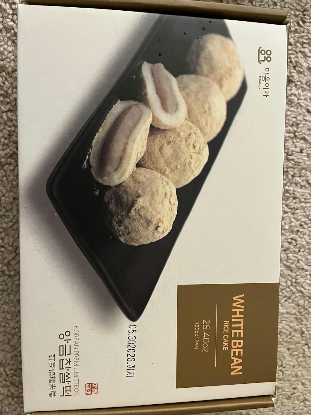 | 원재료명 | 찹쌀(국산), 백앙금[(강남콩/ 외국산: 미국 미얀마, 캐나다 등), 설탕, 물엿, 말토덱스트린, 치아황산나트륨, 소금], 콩가루[(백태/ 외국산: 미국, 캐나다, 중국 등), 소금, 백설탕], 백설탕, 물엿(저당), 천일염, 혼합제제[액상과당, 글리세린에스테르, 프로필렌글리콜, 소르비탄에스테르, 폴리소르베이트60, 주정, 자당에스테르] |